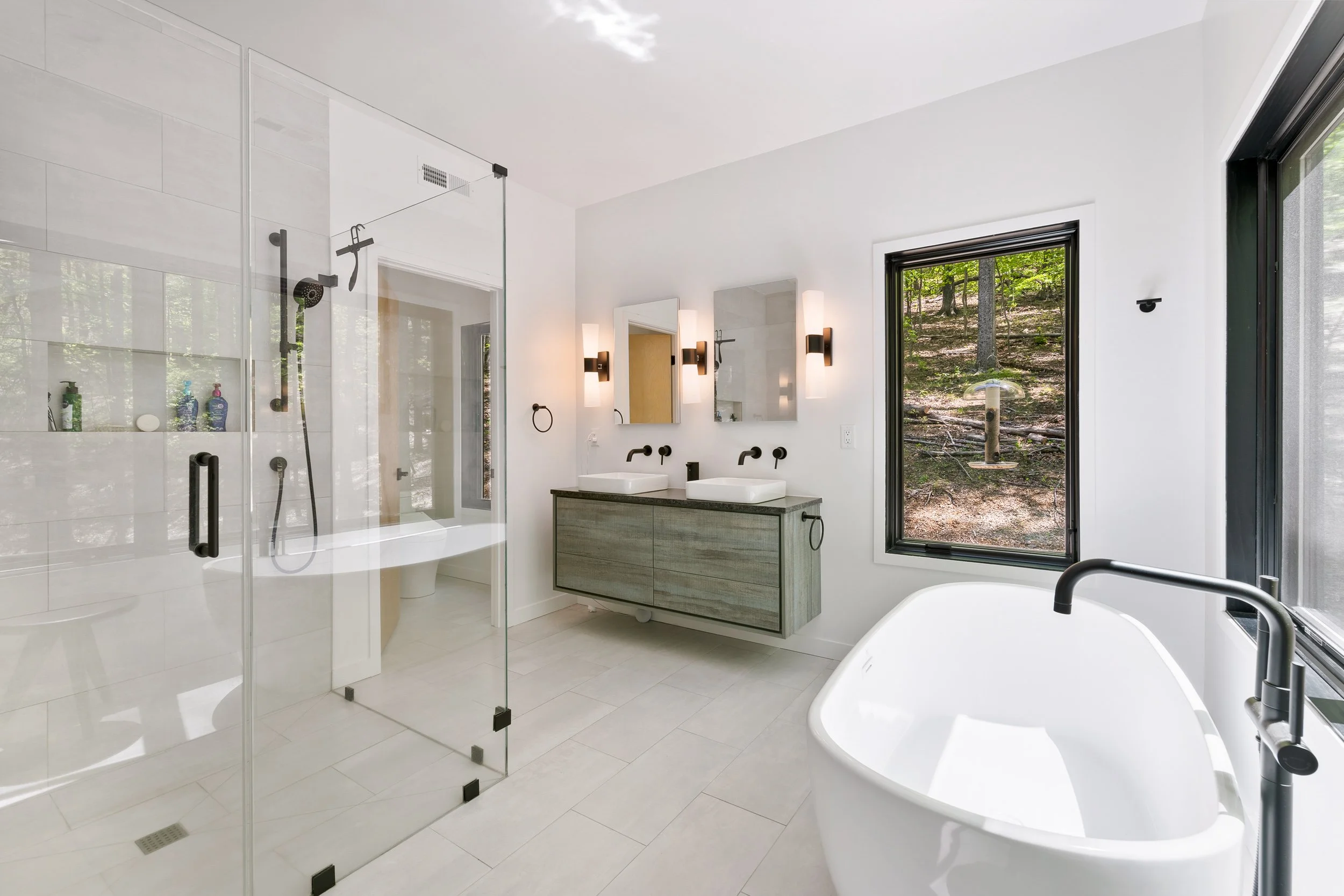 Shooting this home on Craigs Store Road really showcased its unique architecture and bold design. Tucked in the woods, its mix of wood and metal materials stands out, and the vertical structure makes it a standout piece against the forest backdrop. It's a modern retreat that feels both private and expansive, an ideal escape for those who appreciate design that breaks the mold.